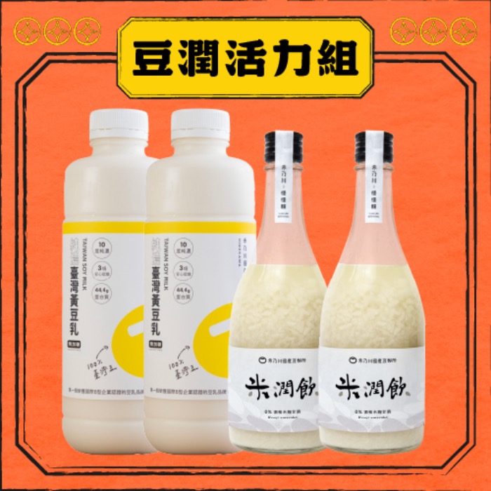 - 組合內容:純濃黃豆乳(無糖) 945ml *2 +原味米麴米潤飲500ml*2