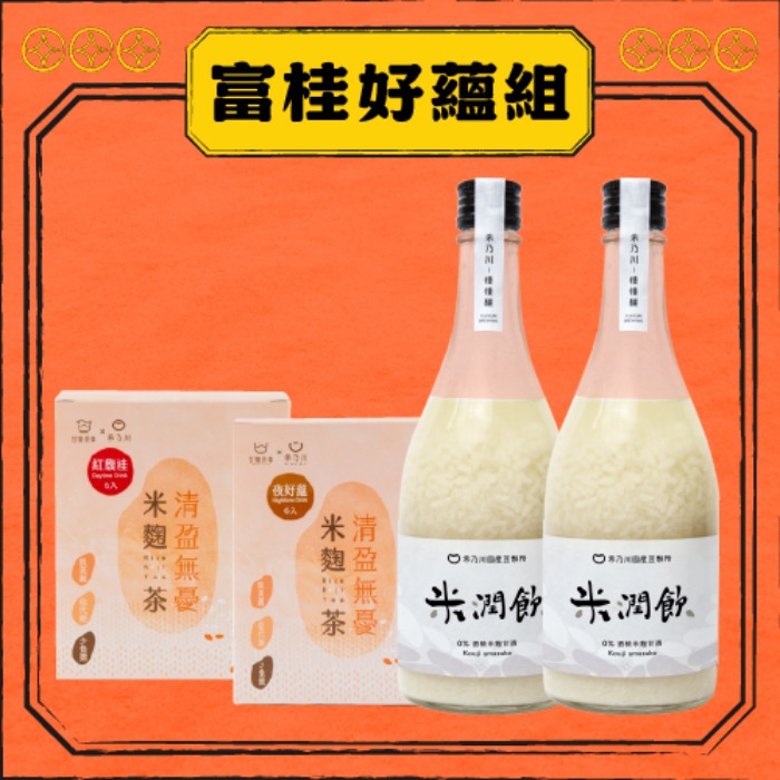 - 組合內容:紅馥桂米麴茶包6入盒*1 +夜好蘊米麴茶包6入盒*1+原味米麴米潤飲500ML*2