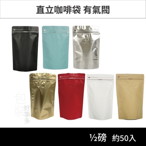 【包裝好事多】半磅 直立 側夾鏈 立袋 咖啡包裝袋 咖啡外袋 咖啡袋 氣閥 1/2磅 250g 咖啡豆袋 50個裝