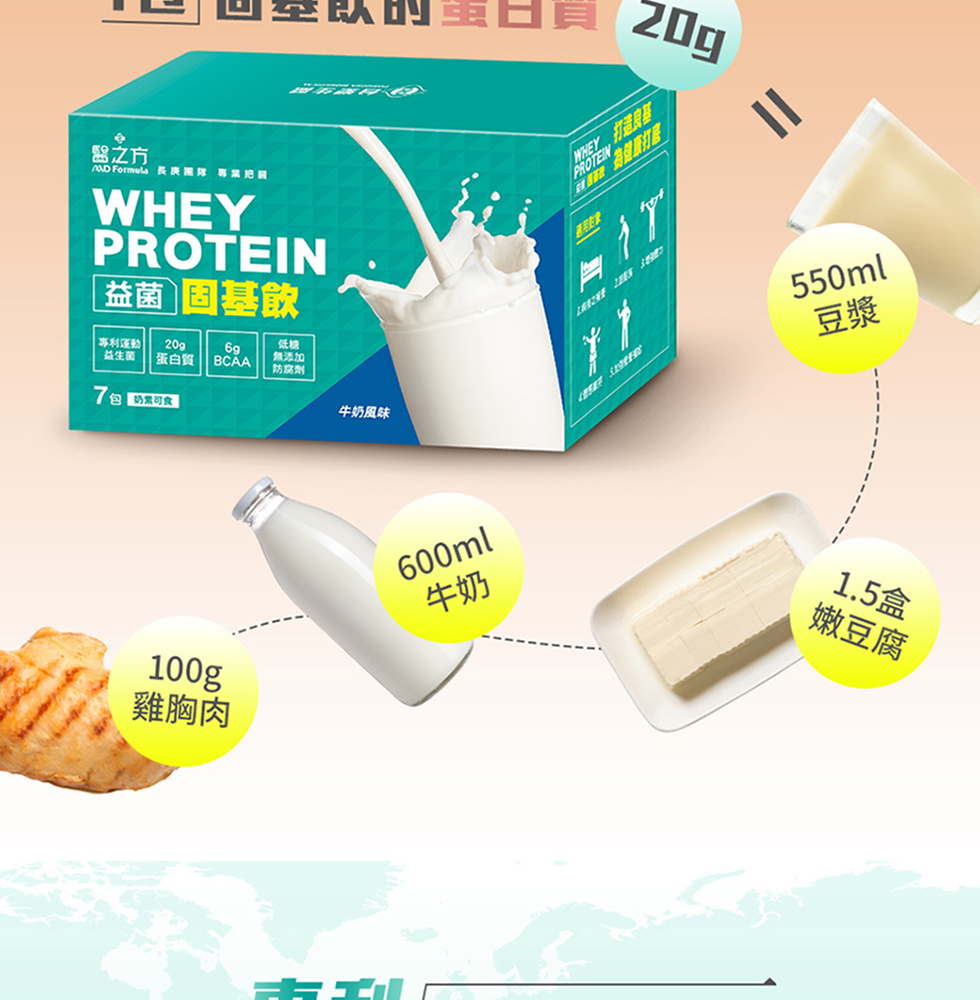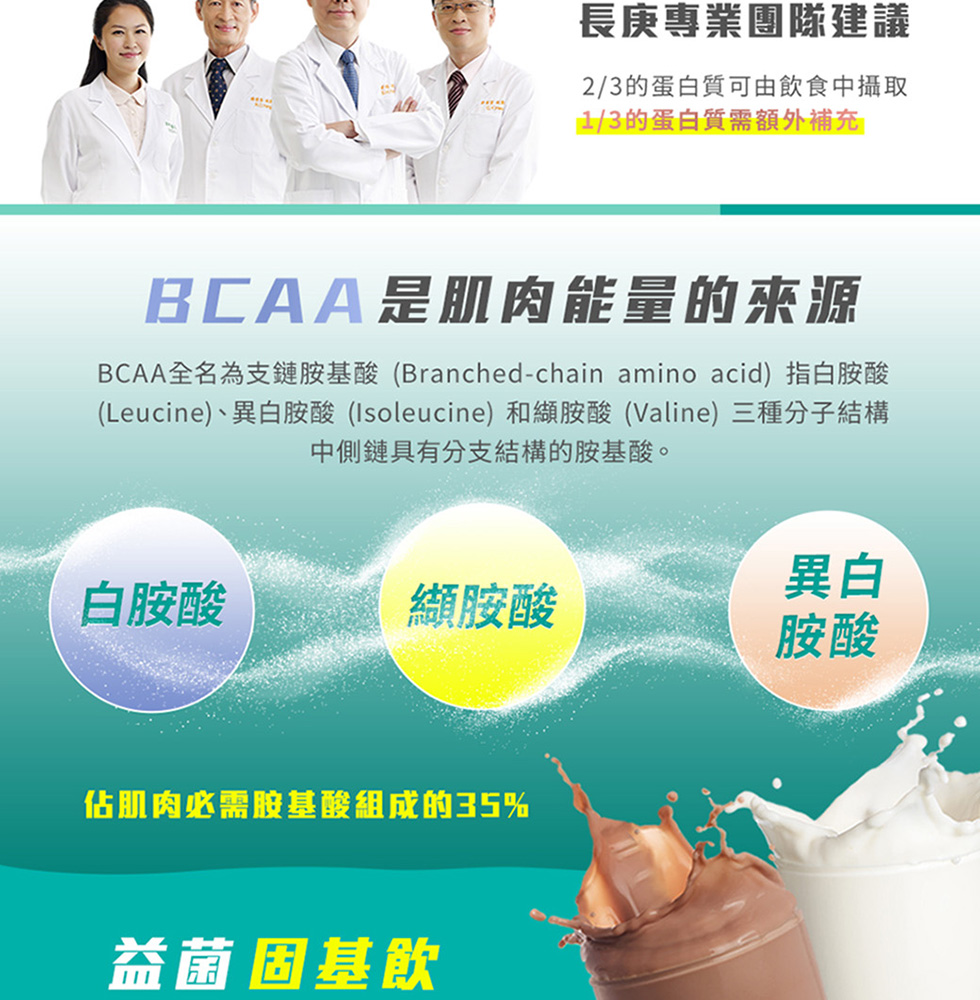 營養標示:(每一份32公克/本包裝含30份)每份熱量 135.3大卡,蛋白質 20.7公克,脂肪 3.7公克,飽和脂肪 3.1公克,反式脂肪 0公克,碳水化合物 4.8公克,糖 2.9公克,鈉 65毫克,支鏈胺基酸(BCAA) 6000毫克