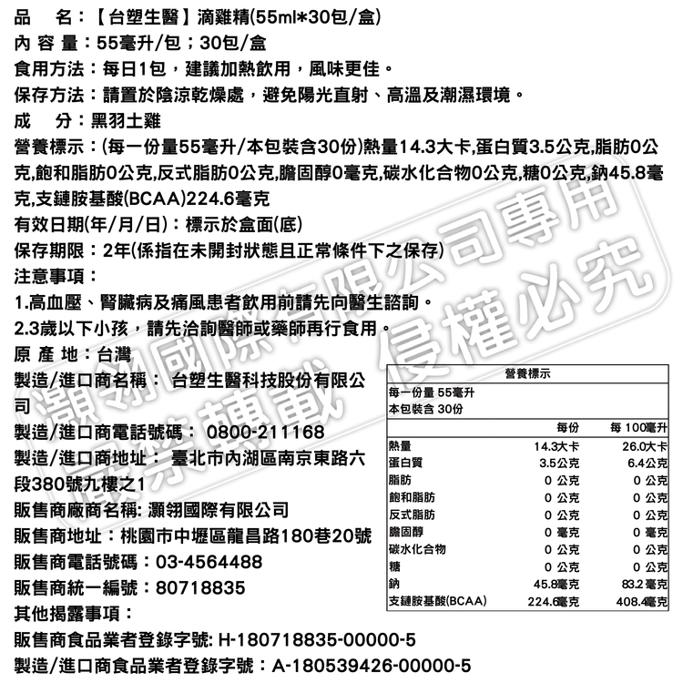 【台塑生醫】滴雞精(55ml*8包/盒)/(55ml*30包/盒) 1盒/2盒 任選多入