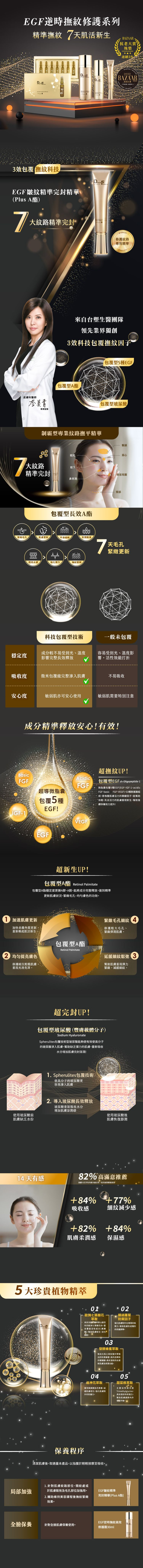 (日)潔顏→EGF 逆時撫紋高效安瓶→EGF皺紋精準完封精華 (plus A酯)→EGF逆時撫紋高效修護眼霜→EGF逆時撫紋高效修護霜→白夏菊超修護防曬乳