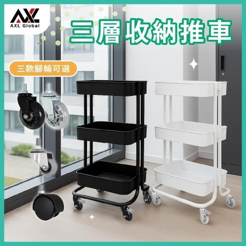 AXL 塑膠三層收納推車,穩固耐用,搭配台灣製靜音萬向輪,推行滑順不刮地板。適用廚房、客廳、臥室、浴室、美容美甲與工作室,多場景靈活收納。可移動層架設計,附煞車輪好推好停,日常整理更省力,提升居家與商用收納便利性。