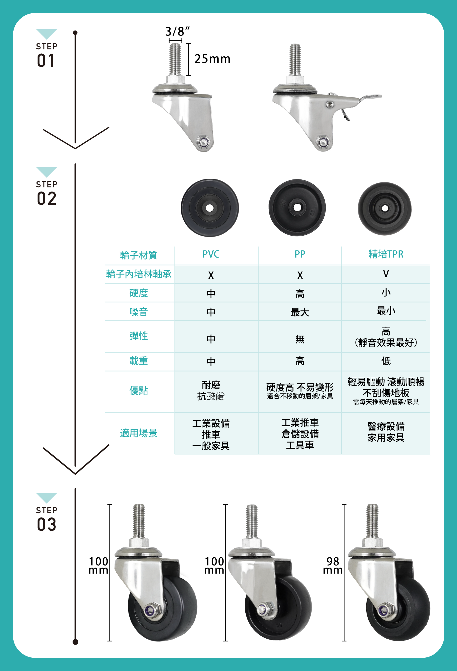 💡 貼心提醒:只販售輪子,不含螺絲,如需請依物品厚度至五金行購買