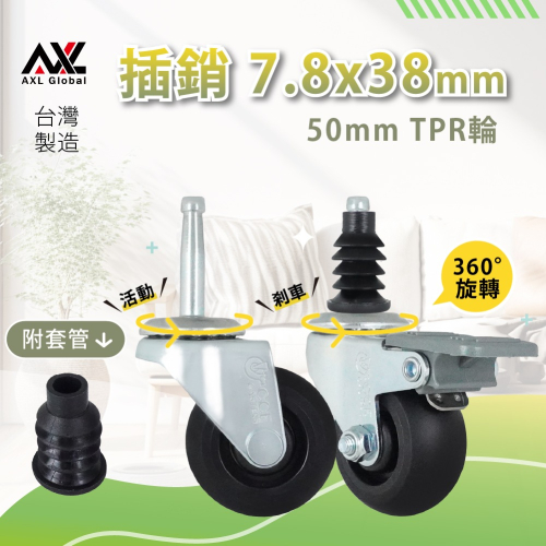 AXL 6 分橡膠套管萬向輪,適用 17–18mm 圓管推車。TPR 靜音輪滑順不刮地板,鋼珠旋轉靈敏,安裝牢固耐用,讓三層推車、美容推車移動更輕鬆。