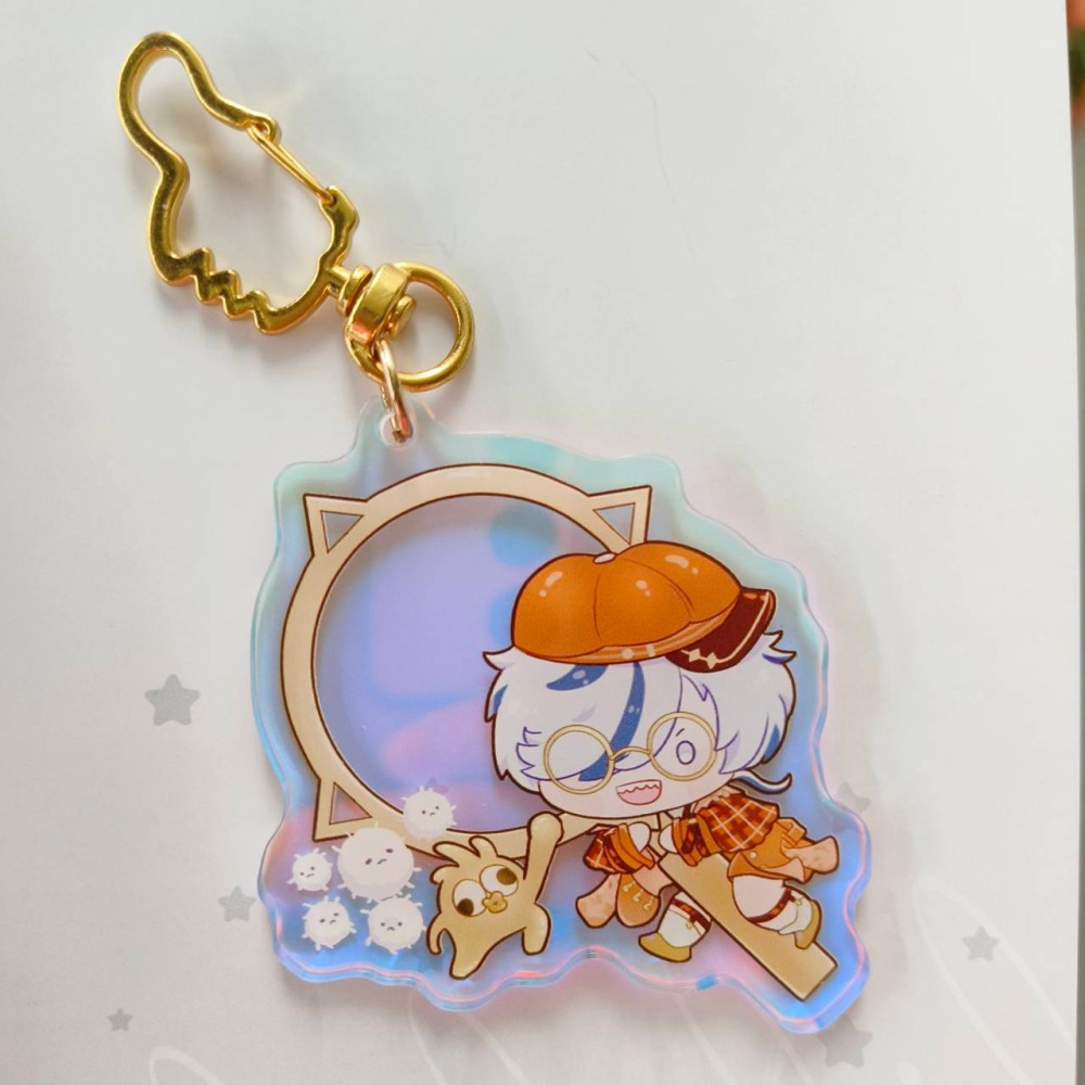 金讚閃亮亮偵探布儡:彩虹素面雷射板材,不同角度,不同顏色。長寬約6公分。