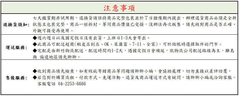 退換貨請保持原始包裝