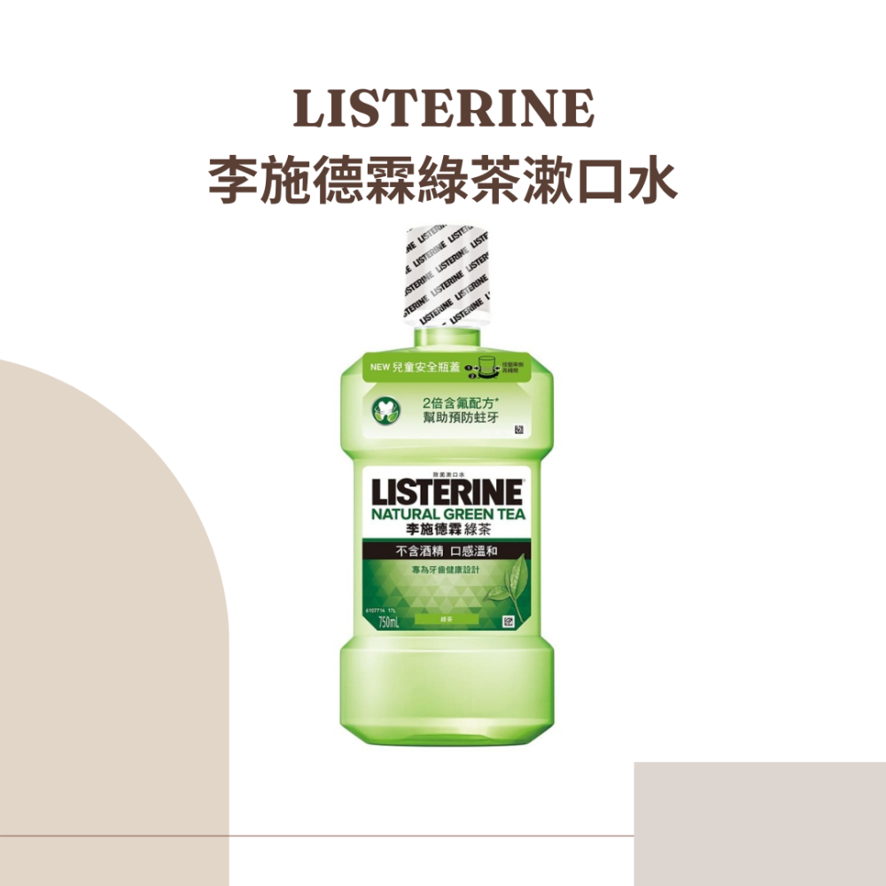 李施德霖綠茶漱口水,添加綠茶精華與氟化物,有效幫助抑制牙菌斑生成、