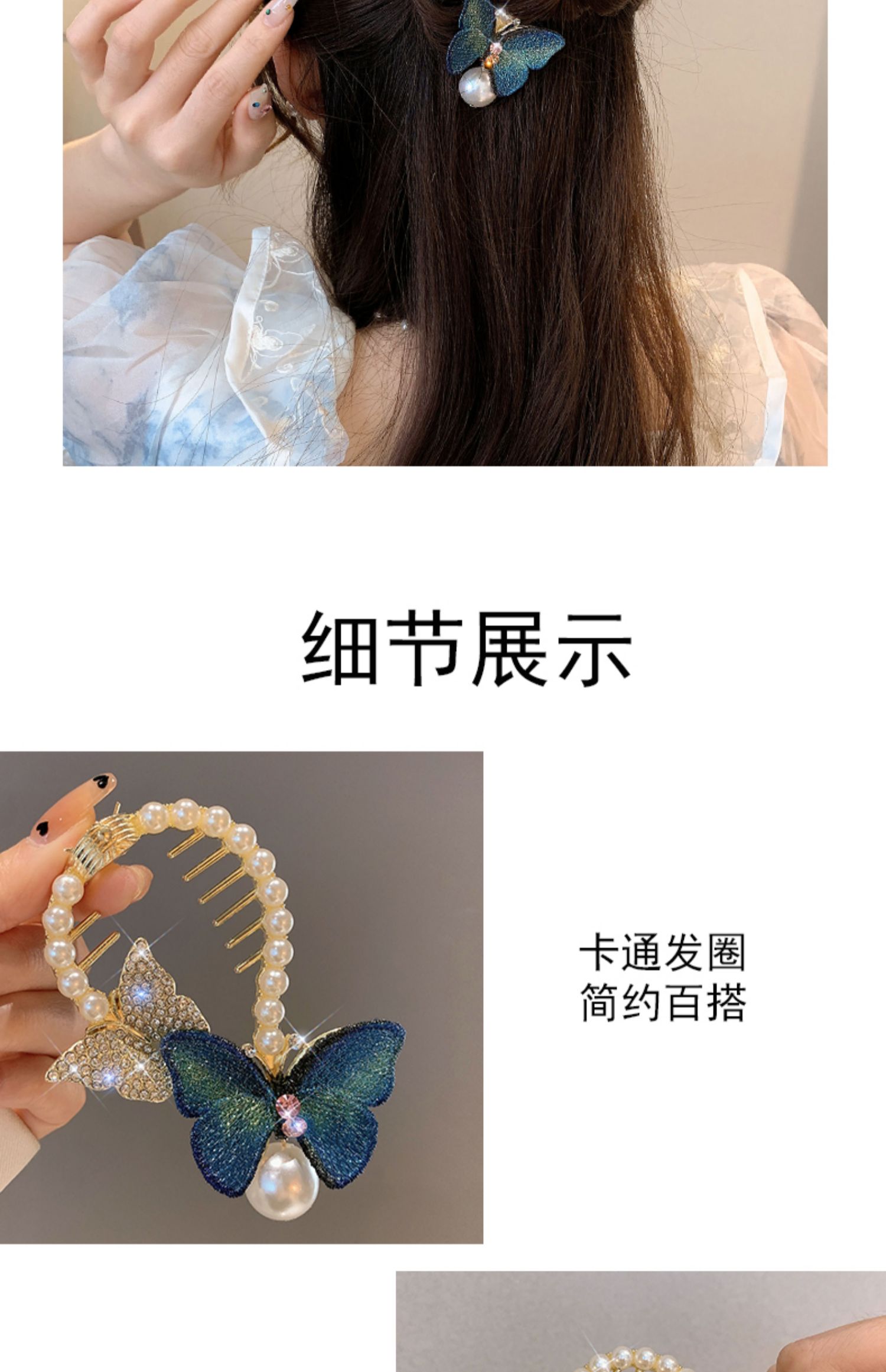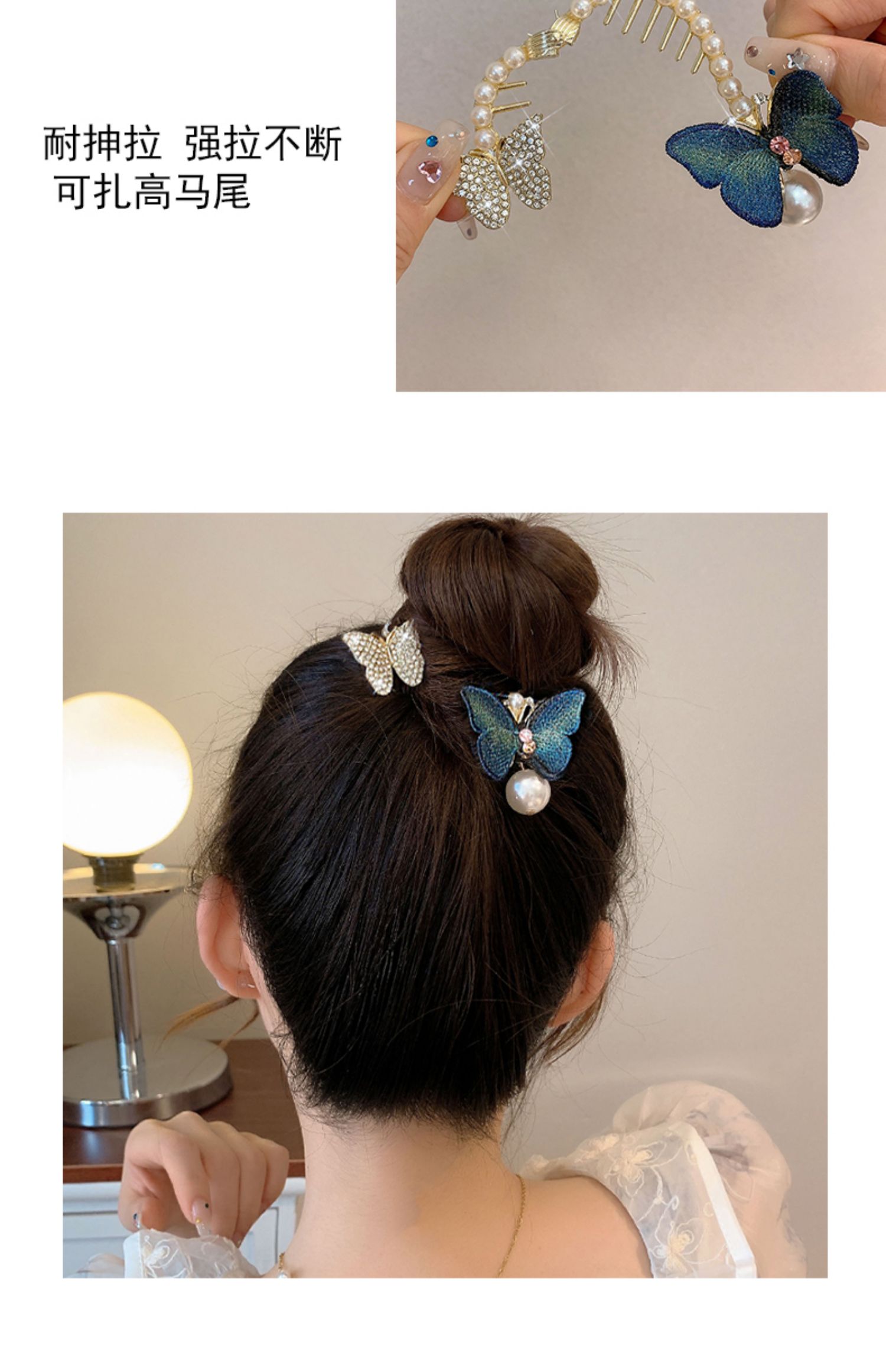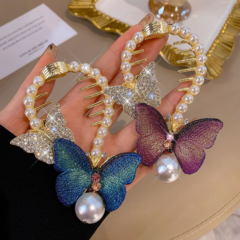 手工刺繡蝴蝶髮夾 輕奢髮飾品 氣質丸子頭髮夾 珍珠馬尾夾 髮夾 髮束 氣質 古典 蝴蝶 刺繡
