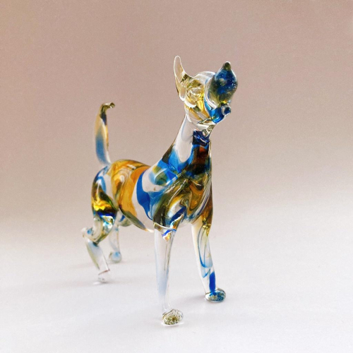 New 純手工燒製 絕美七彩暈染水晶玻璃 旺旺狗來富系列 琉璃 擺飾