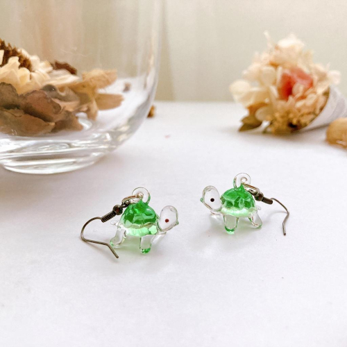 新上市★手工燒製 玻璃製 琉璃 mini小烏龜 耳環 耳飾