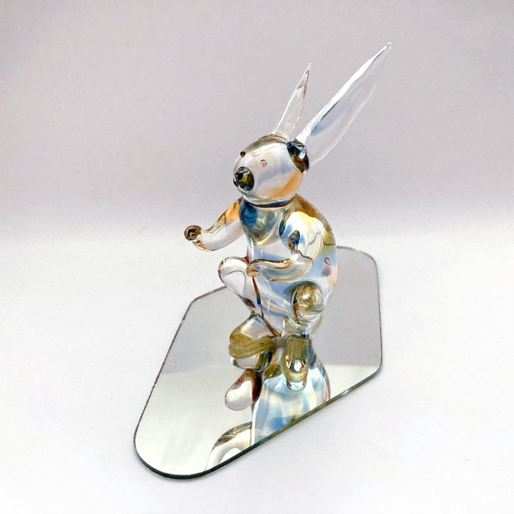 New 純手工燒製絕美七彩暈染水晶玻璃 圓滿如意兔系列 附鏡 琉璃 擺飾
