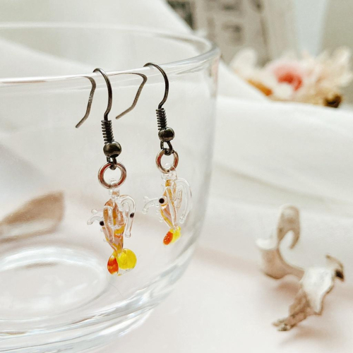 新上市★手工燒製 玻璃製 琉璃 活跳跳鮮蝦 蝦子 耳環 耳飾