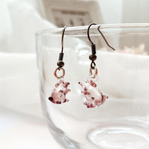 新上市★手工燒製 玻璃製 琉璃 送幸福的小胖鼠 耳環 耳飾
