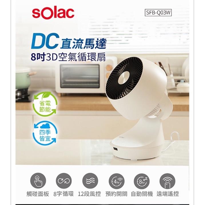 現貨免運‼️Solac DC直流馬達8吋3D空氣循環扇 變頻 風扇SFB-Q03W 原廠公司貨