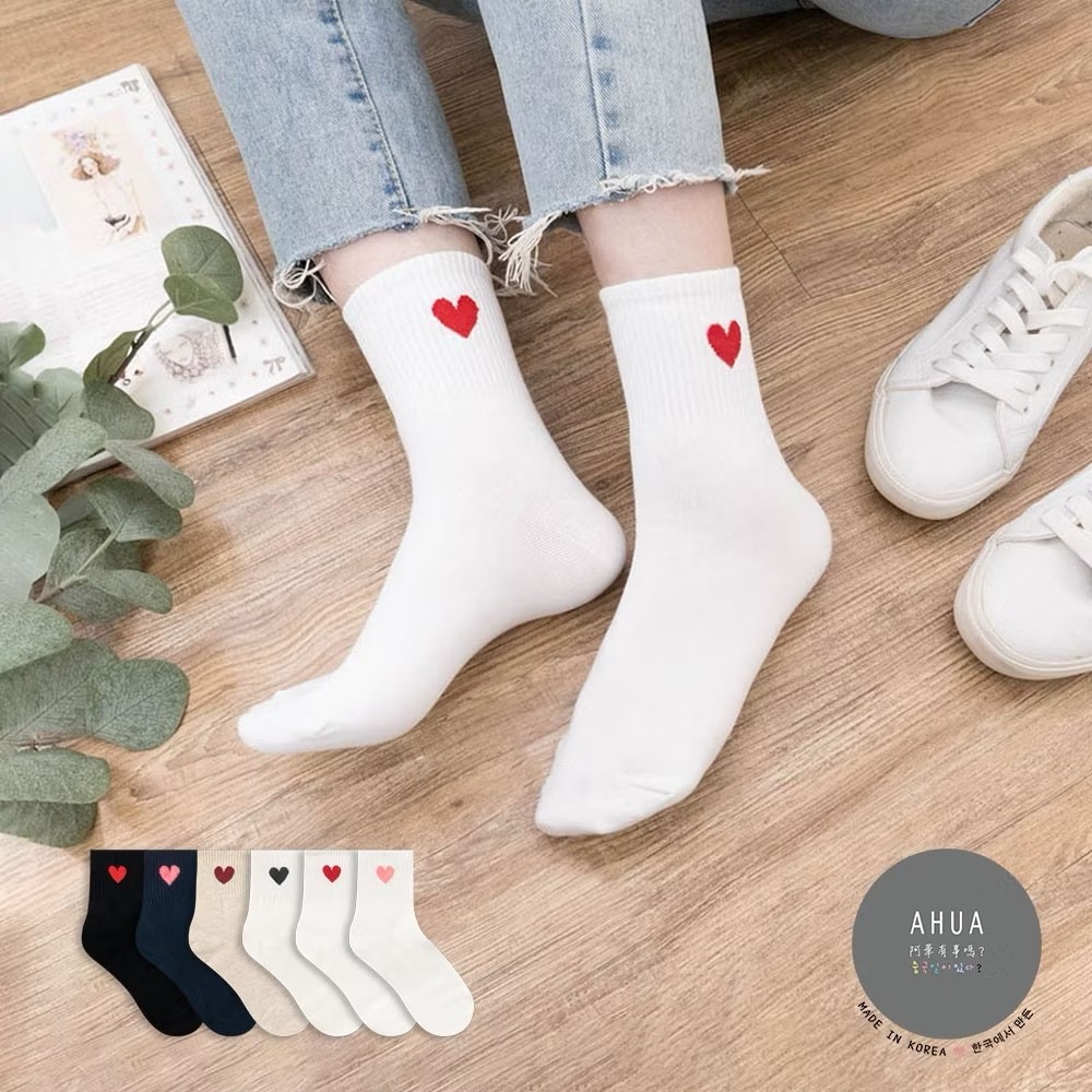 AHUA 韓國襪子 純色愛心中筒襪 女生襪子 女襪 襪子推薦 正韓襪子 純棉襪子 素色襪子 白襪 K0156 阿華有事嗎