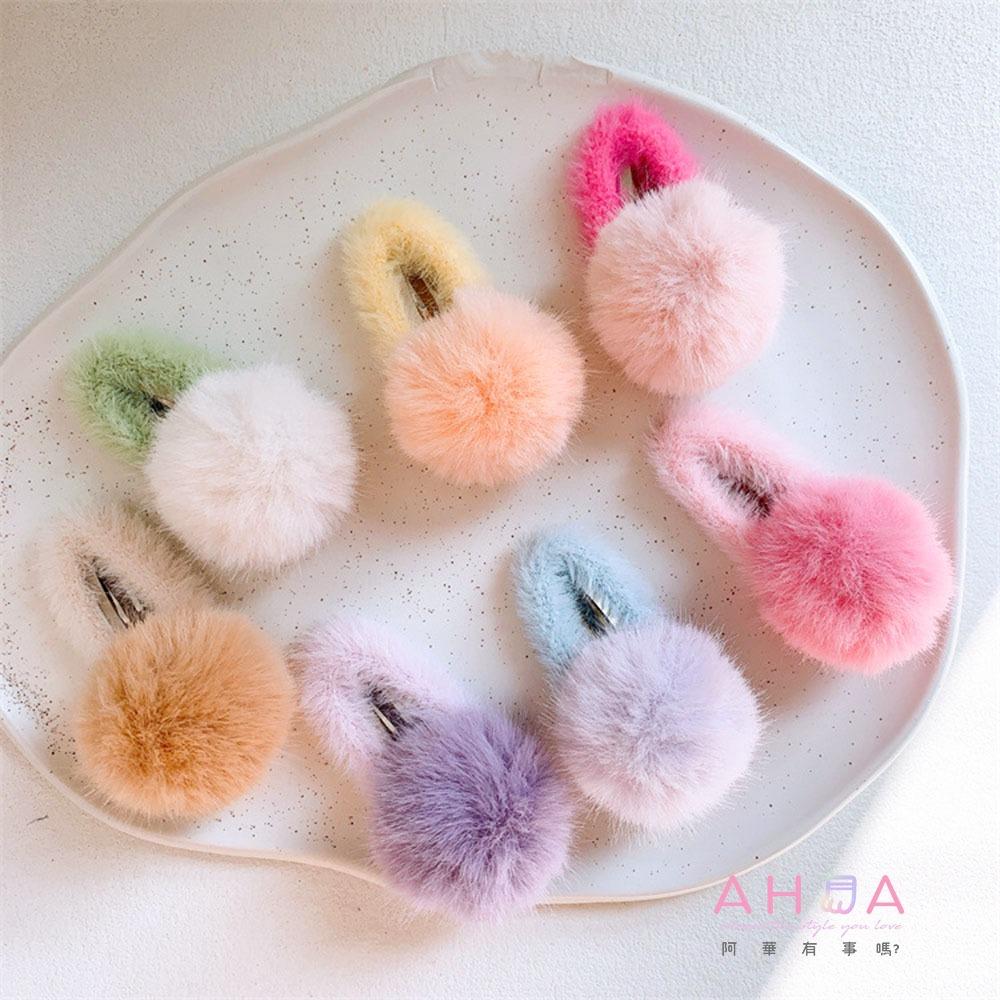 AHUA阿華有事嗎 童撞色毛毛球BB髮夾 TT0025 可愛 日系 韓系 絨毛 髮夾 兒童髮飾