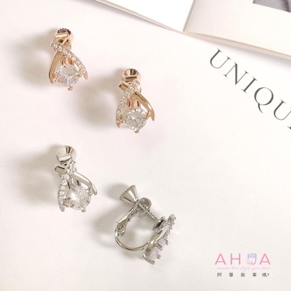 AHUA阿華有事嗎 大水鑽交叉耳夾 A0873 正韓 Ins風 時尚 氣質 百搭 耳夾 無耳洞 基本款