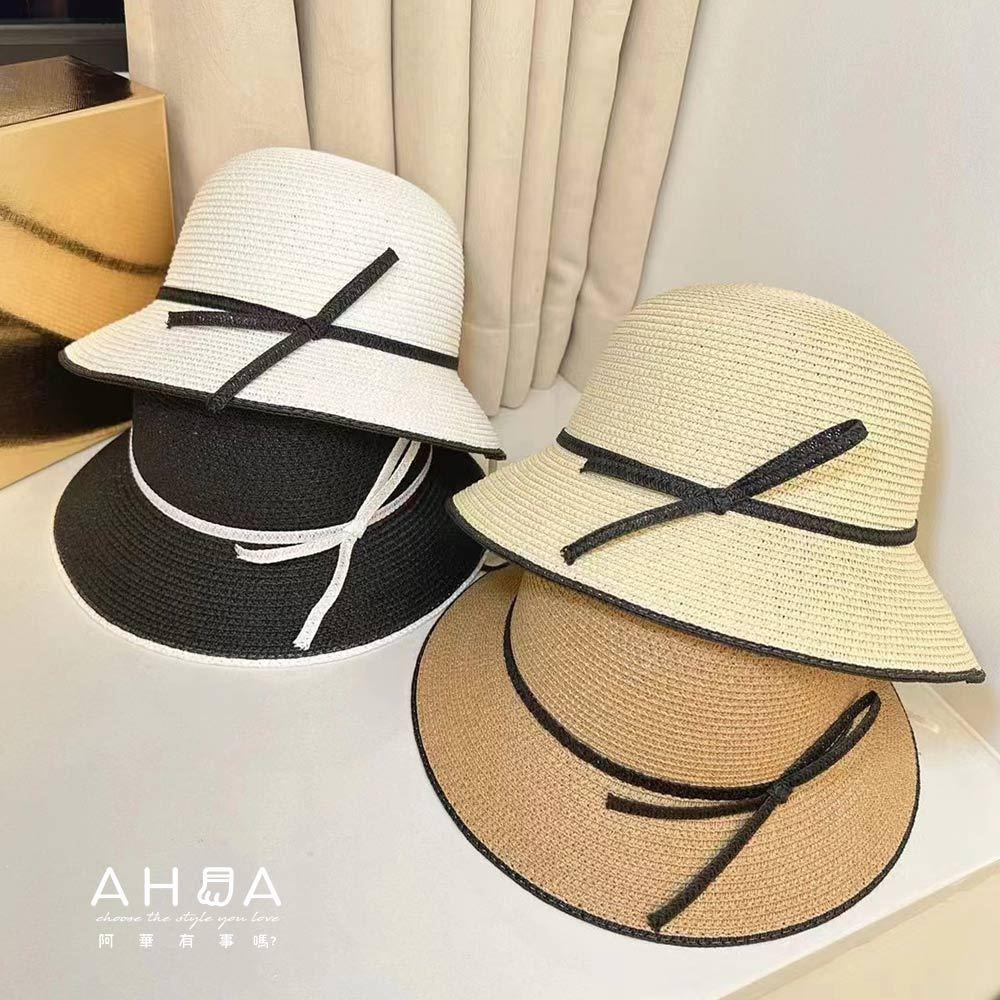 AHUA阿華有事嗎 氣質撞色打結線條編織草帽 H0067 簡約 百搭基本款帽子 草帽 遮陽帽