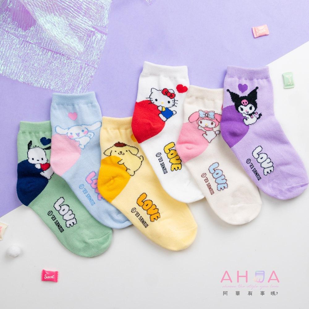 AHUA 韓國童襪 童三麗鷗擁抱愛心中筒襪 KCD0034 酷洛米 正韓純棉襪 女童男襪 兒童上學必備襪子 阿華有事嗎