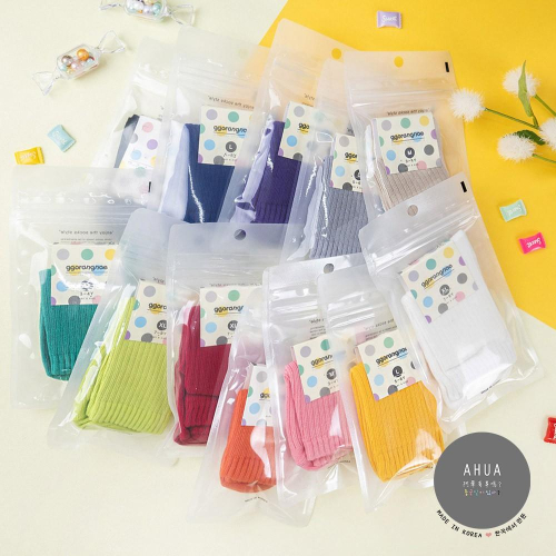 AHUA 韓國童襪 純色條紋兒童中筒襪 童襪 KCD0027 腳底止滑 女童襪 男童襪 純棉襪 素色童襪 阿華有事