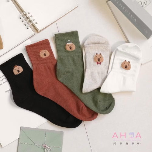 AHUA阿華有事嗎 立體毛毛水豚裝扮小頭中筒襪 K2209 正韓襪子 百搭純棉襪 韓妞必備 少女襪