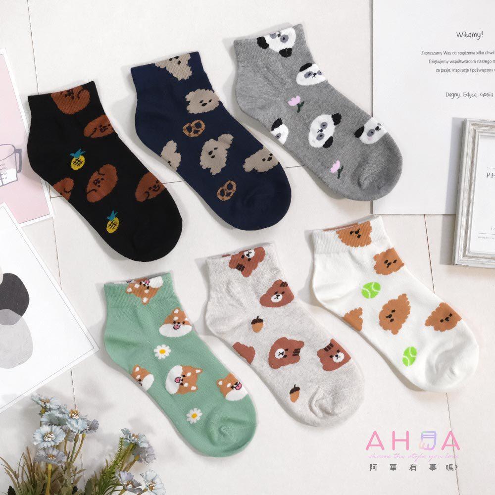 AHUA阿華有事嗎 滿版動物小頭花花點心短襪 K2171 正韓襪子 百搭純棉襪 韓妞必備 少女襪