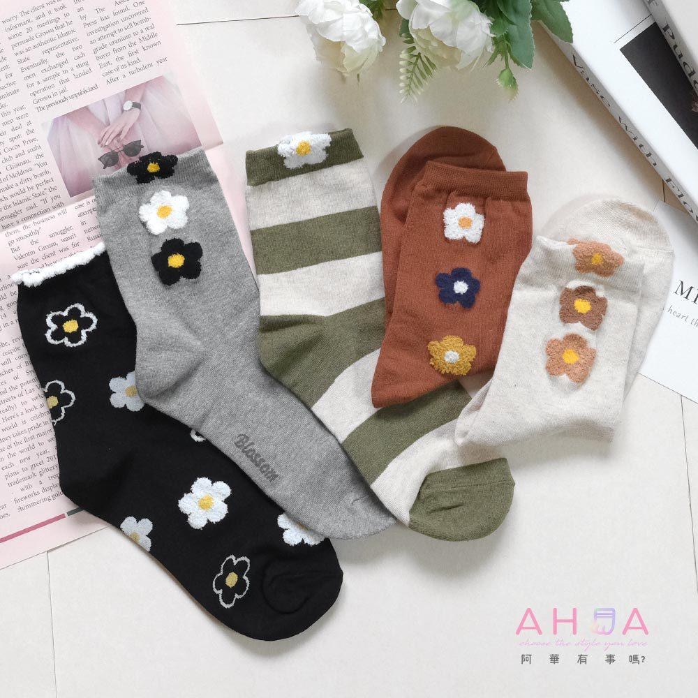 AHUA 立體毛毛花花中筒襪 女生襪子 正韓襪子 春夏穿搭 花花襪子 純棉襪 學生襪 襪子推薦 K2218 阿華有事嗎