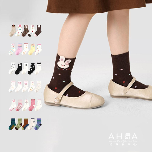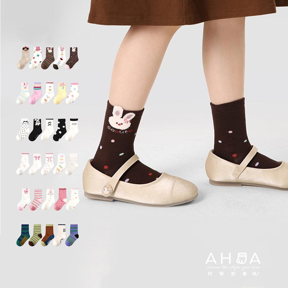 AHUA阿華有事嗎 童立體小動物條紋波點中筒襪(五雙組) SCD0016 童襪 兒童中筒襪 百搭純棉襪 可愛 阿華有事嗎
