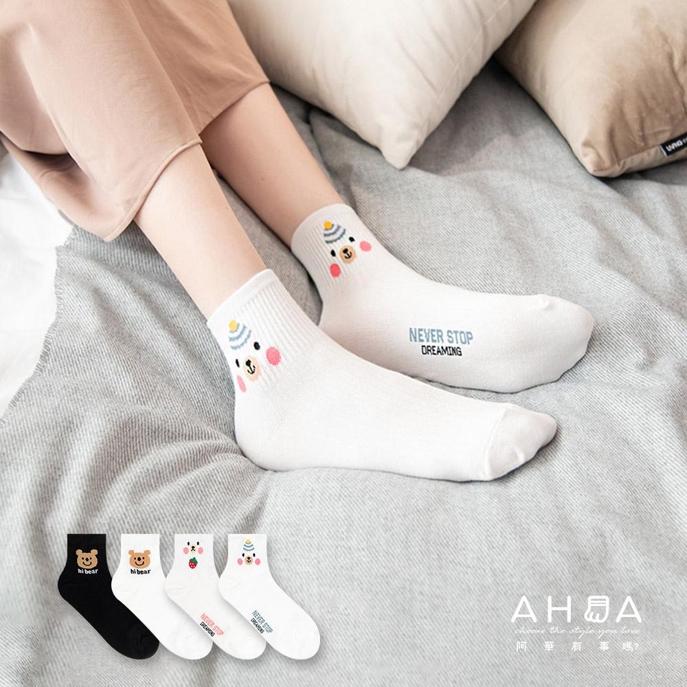 AUHA 韓國襪子 呆萌小熊條紋中短襪 女生襪子 女襪 K1463 可愛 動物 短襪 女襪 純棉 韓妞必備 阿華有事嗎