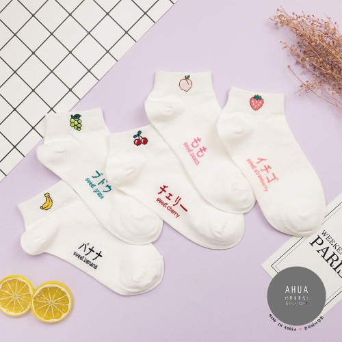 AHUA阿華有事嗎 韓國襪子 水果襪口短襪 K0718 正韓少女襪 韓妞必備卡通襪 百搭純棉襪 素色襪子