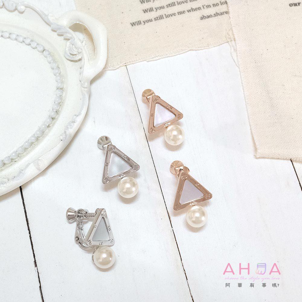 AHUA阿華有事嗎 三角大理石紋珍珠耳夾 A0869 正韓 Ins風 時尚 氣質 百搭 耳夾 無耳洞 基本款