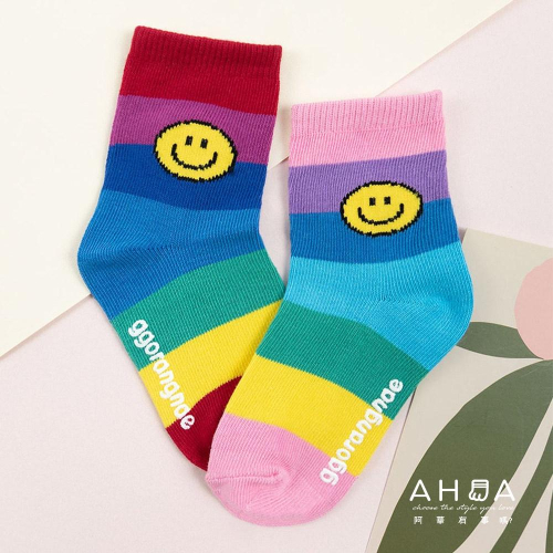 AHUA阿華有事嗎 韓國童襪 童毛毛笑臉彩色中筒襪 KCD0029 正韓 孩童上學必備 百搭純棉襪