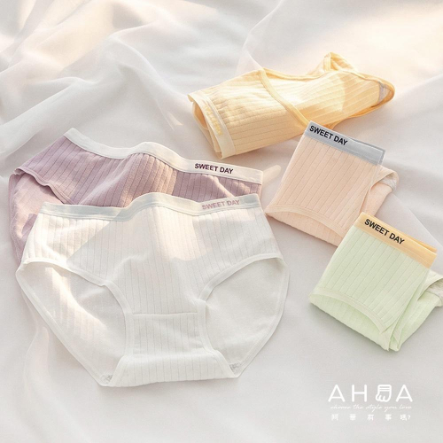 AHUA阿華有事嗎 韓系內褲 馬卡龍撞色腰邊坑條紋內褲 I0025 純棉 可愛 女內褲 流行少女內褲