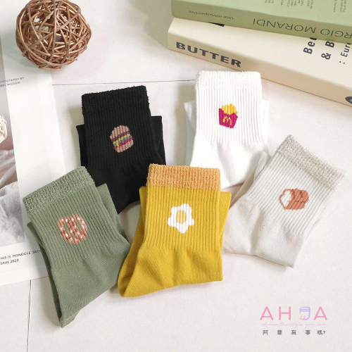 AHUA阿華有事嗎 襪口毛毛可愛日常點心食物中筒襪 K2198 正韓襪子 百搭純棉襪 韓妞必備 少女襪