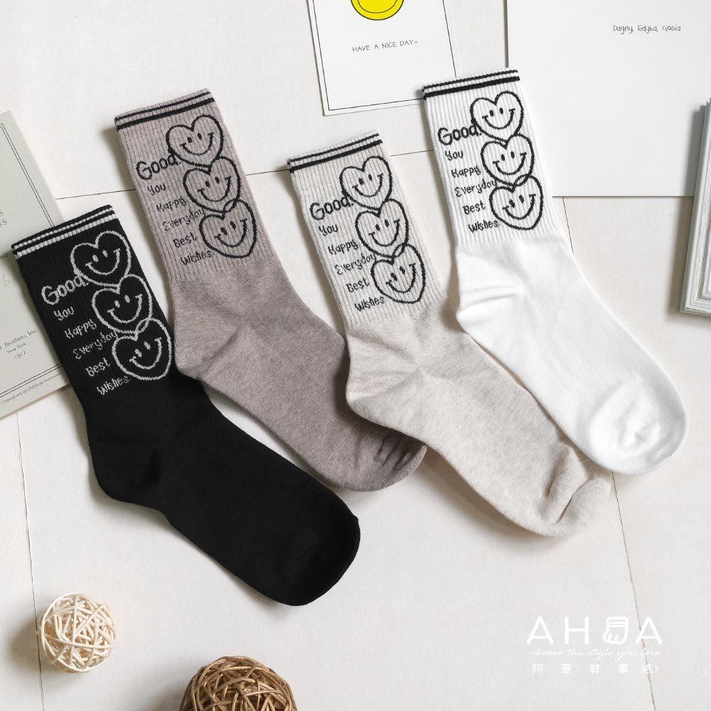 AHUA阿華有事嗎 最好的祝福三個微笑愛心中長筒襪 K2186 正韓襪子 百搭純棉襪 韓妞必備 少女襪