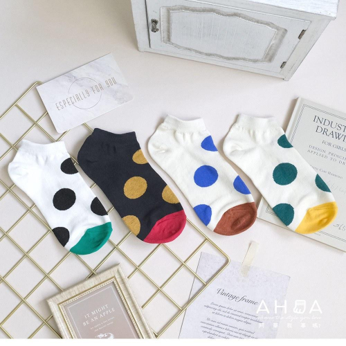 AHUA阿華有事嗎 滿版撞色大圓點前跟拼色短襪 K2114 正韓襪子 百搭純棉襪 韓妞必備 少女襪