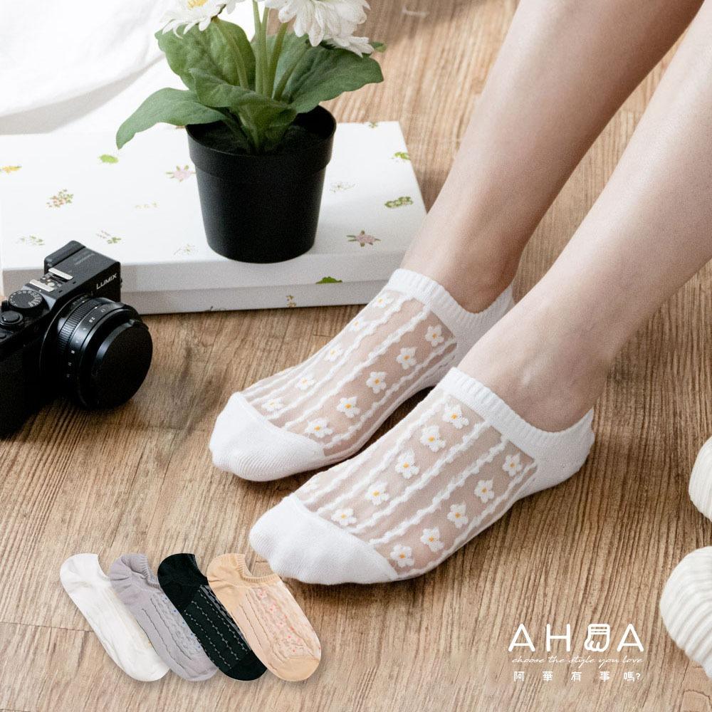 AHUA 韓國襪子 腳背透膚線條花朵船型襪 K2072 韓妞必備 百搭純棉襪 正韓襪子 少女襪 阿華有事嗎