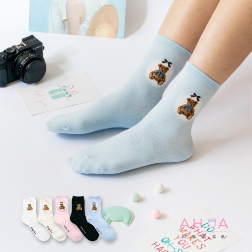 AHUA 韓國襪子 緞帶布偶小熊中筒襪 K2035 韓妞必備 百搭純棉襪 正韓襪子 少女襪 阿華有事嗎