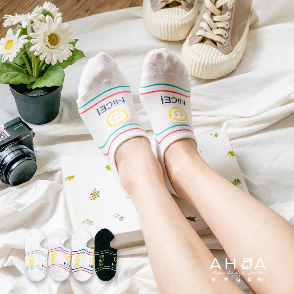 AHUA 韓國襪子 雙色條紋NICE!縷空笑臉船型襪K2000 韓妞必備 百搭純棉襪 正韓襪子 少女襪 阿華有事嗎