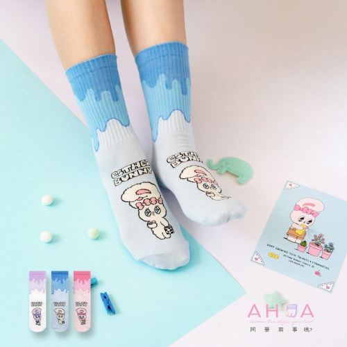 AHUA 艾絲樂小兔聯名-冰淇淋漸層中筒襪 女生襪子 R0022 純棉中筒襪 MIT台灣製造 原創設計襪