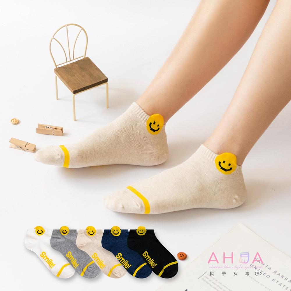 AHUA 韓國襪子 Smile!立體耳朵黃色笑臉短襪 K2058 韓妞必備 百搭純棉襪 正韓襪子 少女襪 阿華有事嗎