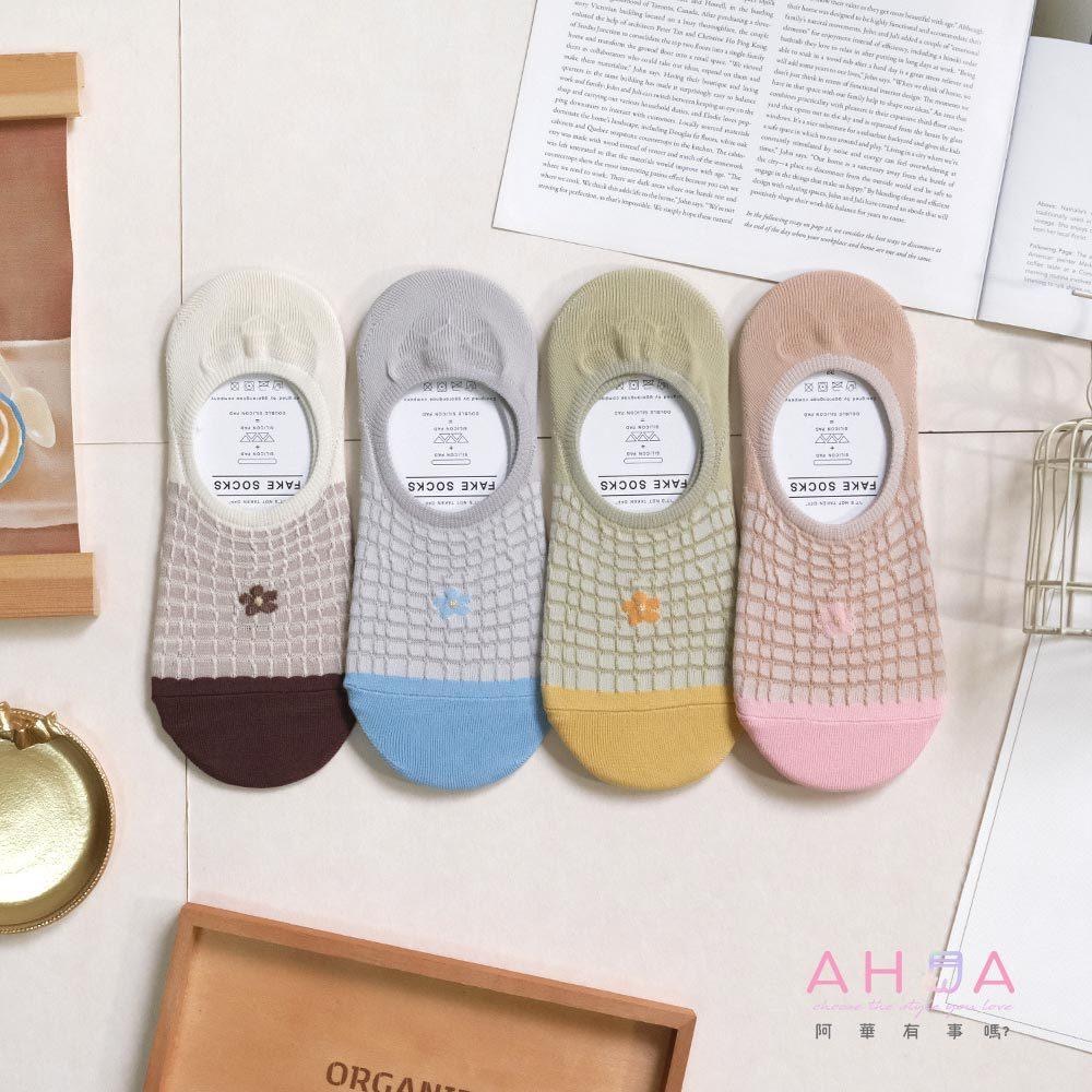 AHUA阿華有事嗎 鬆餅格紋小花前跟拼色隱形襪 K2166 正韓襪子 百搭純棉襪 韓妞必備 少女襪