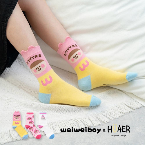 AHUA原創設計襪子 HUAER x WeiWeiBoy 可愛大王聯名中筒襪 立體耳朵襪子 Z0028 阿華有事嗎