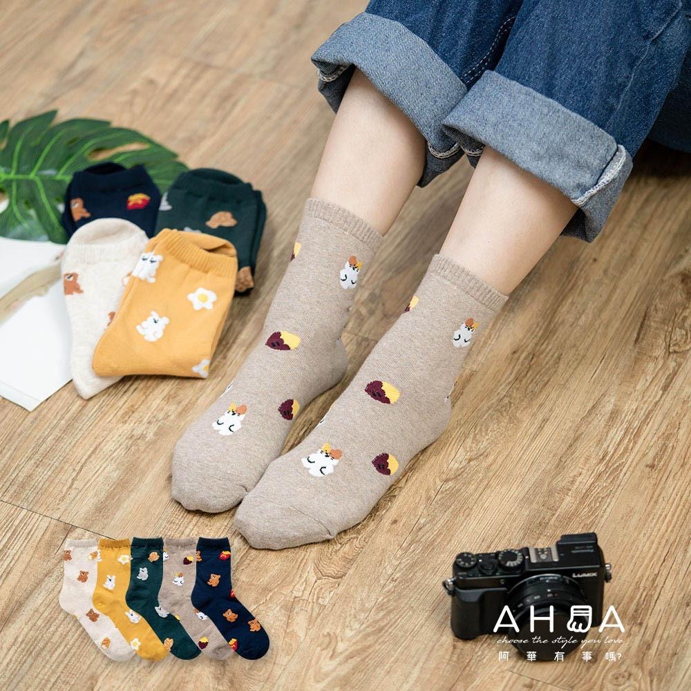 AHUA阿華有事嗎 韓國襪子 滿版小動物點心中筒襪 K1936 韓妞必備 百搭純棉襪 日系 可愛 動物