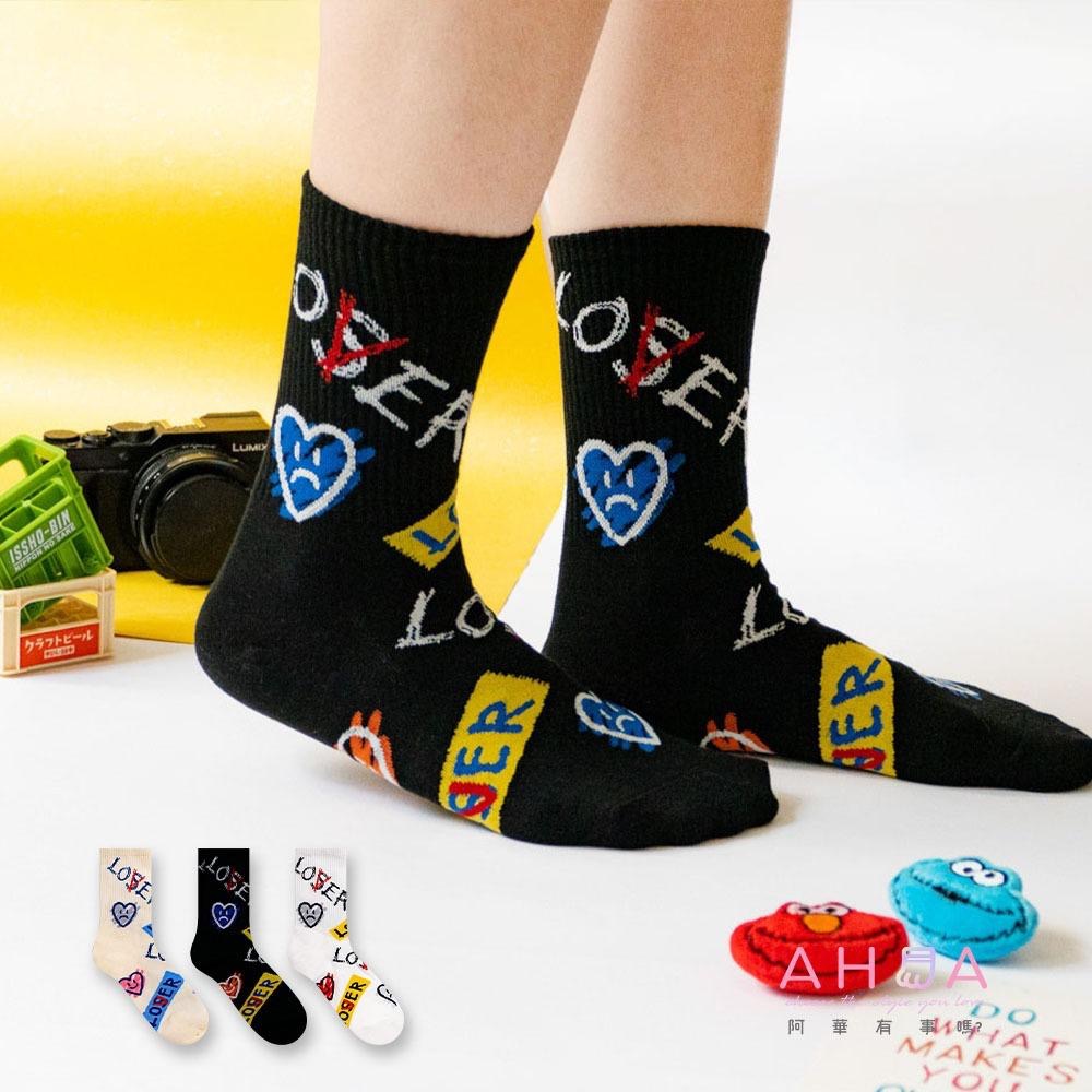 AHUA 韓國襪子 LOVER英文愛心塗鴉中筒襪 K2008 韓妞必備 百搭純棉襪 正韓襪子 少女襪 阿華有事嗎
