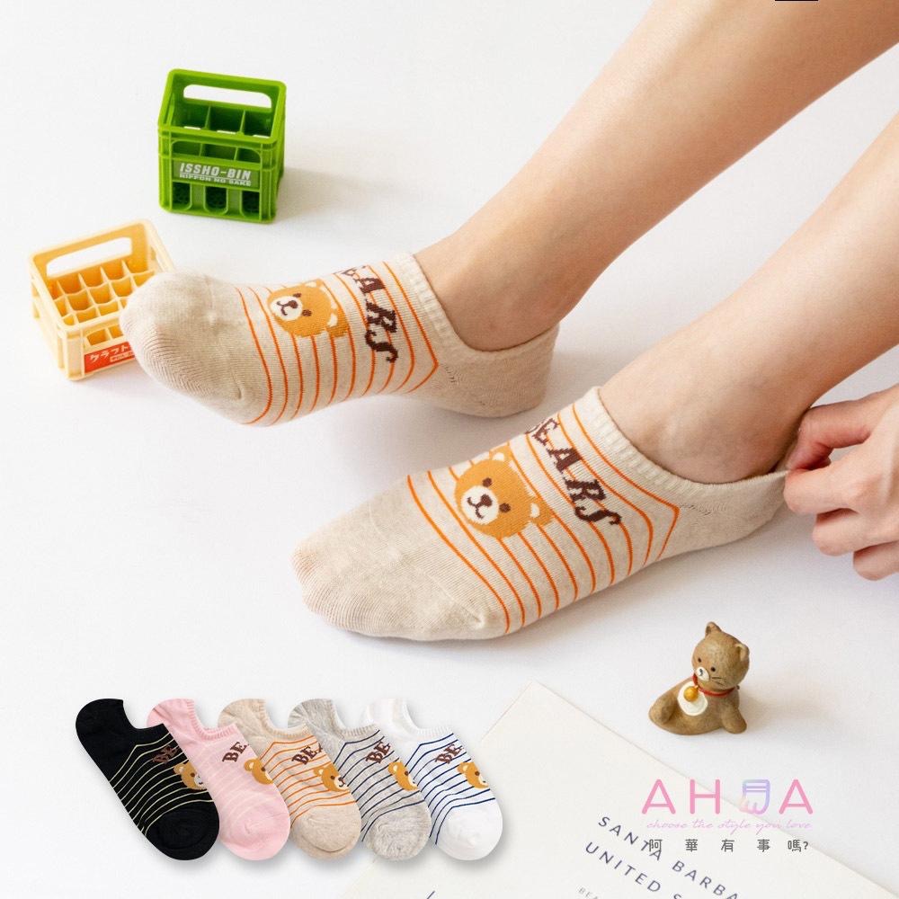 AHUA 韓國襪子 BEAR小熊橫條船型襪 K2052 韓妞必備 止滑襪 百搭純棉襪 正韓襪子 少女襪 阿華有事嗎