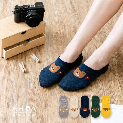 AHUA 韓國襪子 腳背開心熊熊小頭花朵隱形襪 K2017 韓妞必備 百搭純棉襪 正韓襪子 少女襪 阿華有事嗎