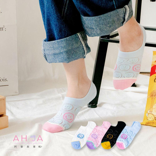 AHUA阿華有事嗎 滿版透膚笑臉前跟多巴胺拼色船型襪 K2093 正韓襪子 百搭純棉襪 韓妞必備 少女襪