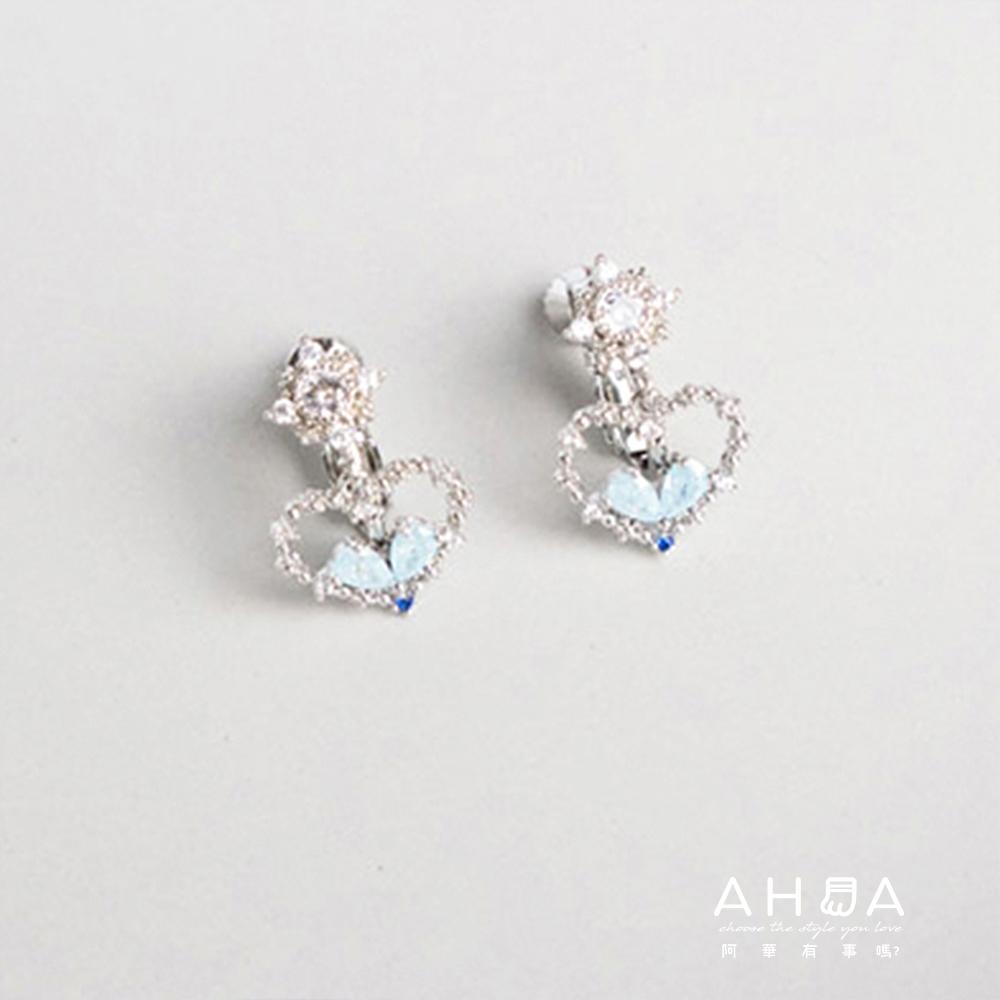 AHUA阿華有事嗎 藍水鑽摟空愛心耳夾 A0853 正韓 Ins風 時尚 氣質 百搭 耳夾 無耳洞 水鑽款